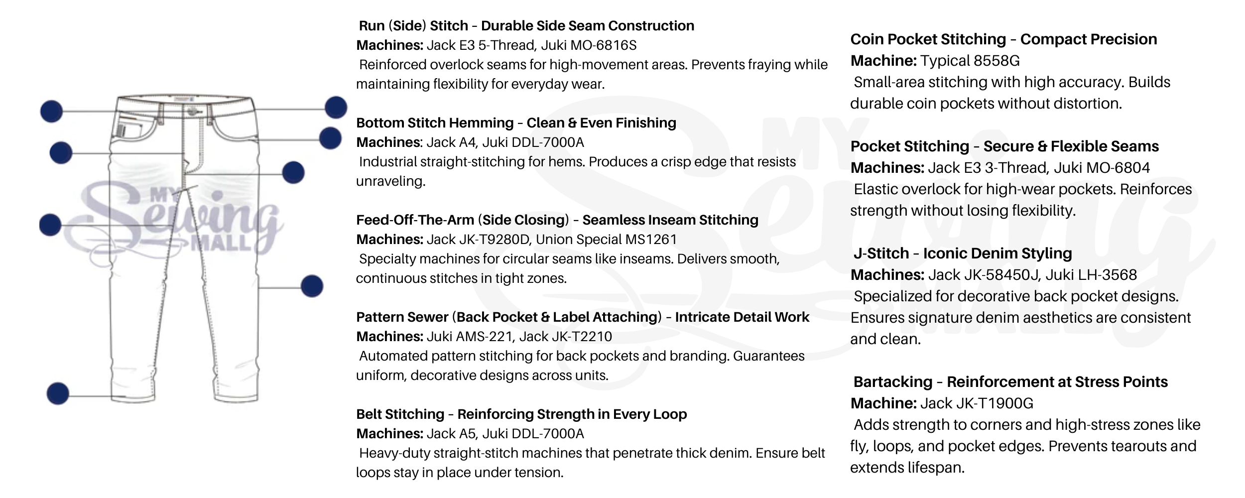 Denim Manufacturing Requires Powerful Stitching, Reinforced Seams, and Clean Finishing, Our Selection is Made to Handle It All.