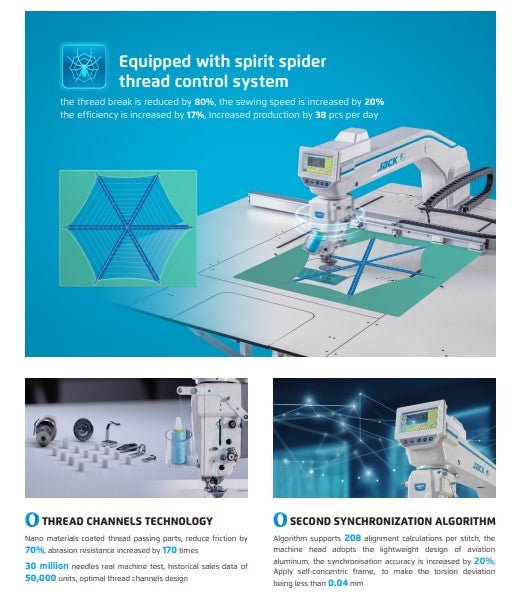 - Spirit Spider Thread Control System: Reduces thread breakage by 80%, minimizing downtime.