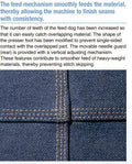 - Feed-Off-the-Arm Design – Makes it easier to sew tubular parts like jeans and cuffs.