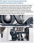 - Consistent Loop Formation – Bobbin thread is clamped securely for uniform stitches every time.
