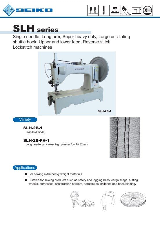 Seiko is renowned for its commitment to quality and innovation in the sewing industry. The SLH-2B-FH-1 model exemplifies Seiko's dedication to providing durable and efficient machines tailored for heavy-duty applications.